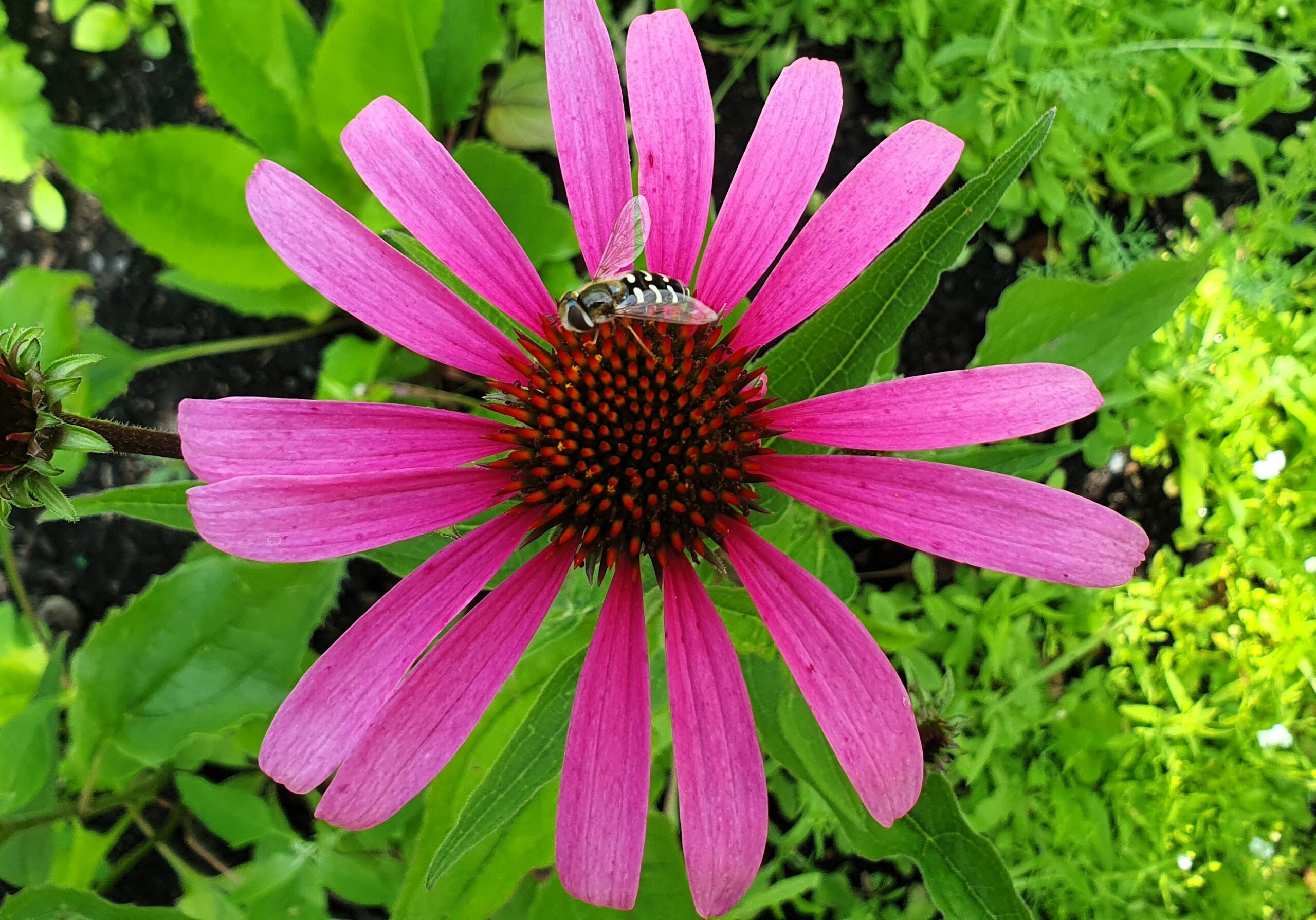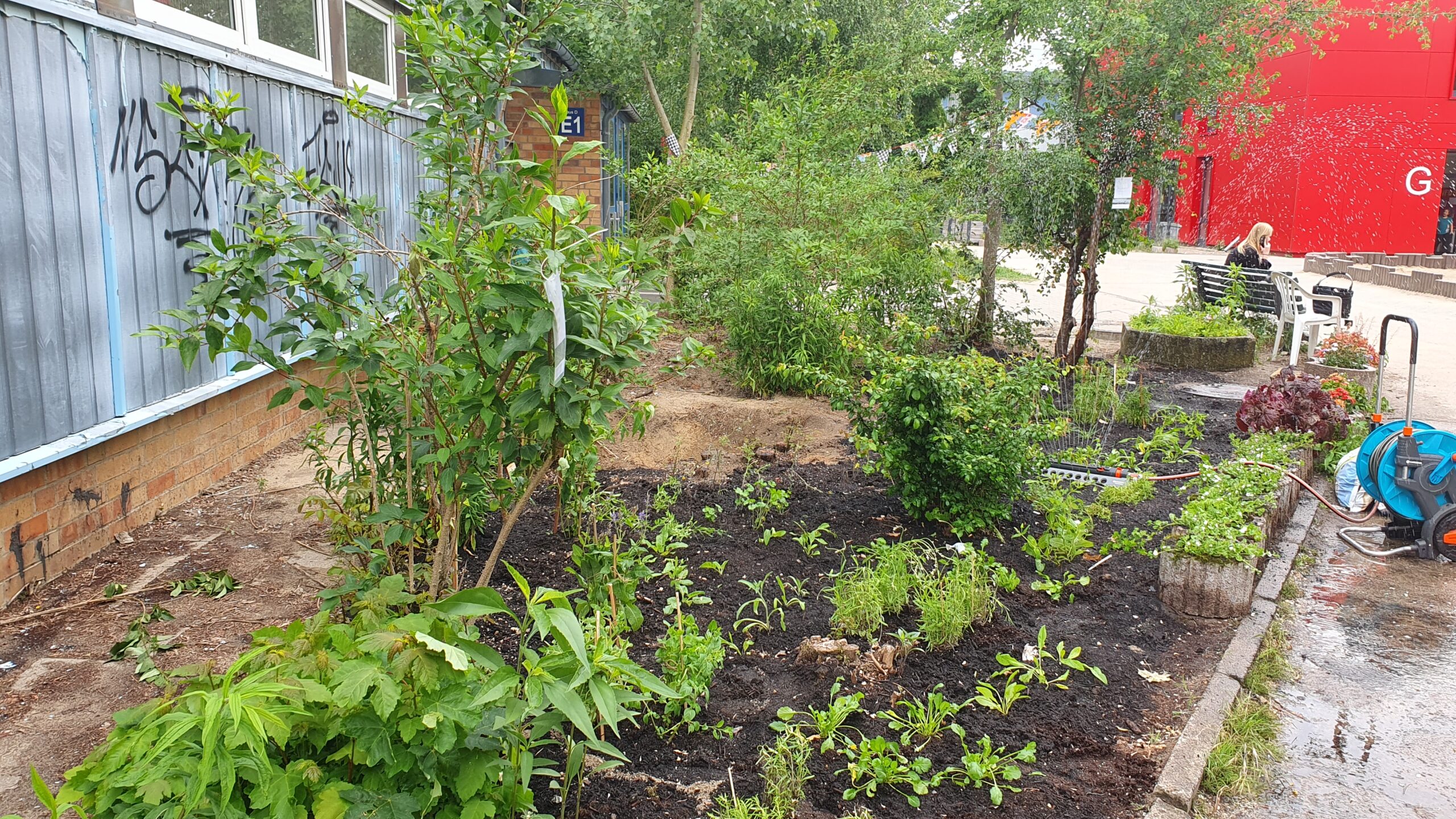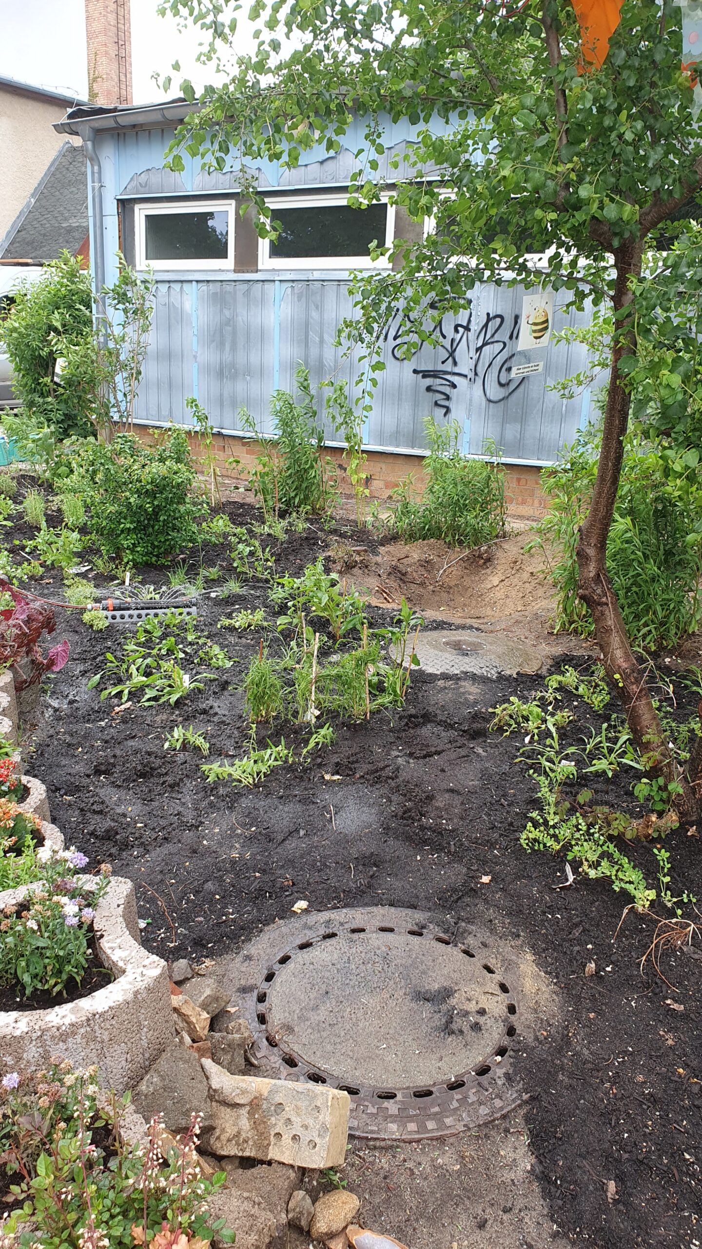 An verschiedenen Aktionstagen haben wir schon das erste Areal bearbeitet: Ungeeignete Pflanzen wurden entfernt, der Boden umgegraben, mit Komposterde aufgefüllt und dann mit insektenfreundlichen, heimischen Pflanzen bepflanzt. Die Pflanzen und die Erde wurden mit Hilfe von Grün macht Schule und durch Spenden von unserem 1. Hoftag finanziert. Viele begeisterte Helfer – Lehrer, Eltern und Schüler – haben aus einem „toten“ Stück Schulhof eine lebendige Oase geschaffen, die Insekten Nahrung, Schutz und Blütenvielfalt bietet.