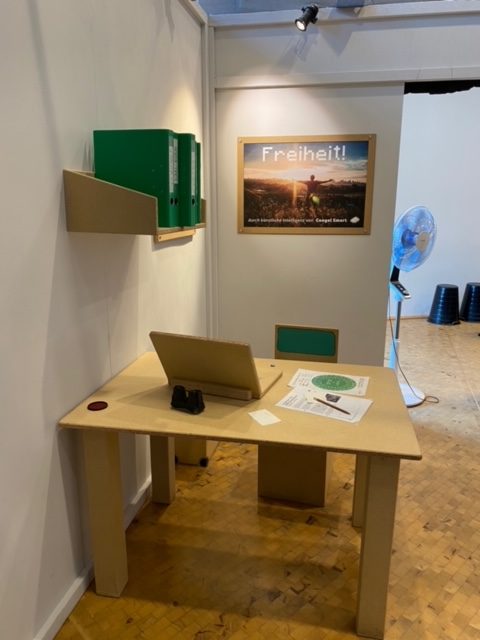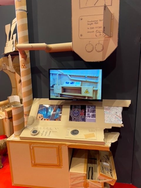 In dem ersten Raum war ein Mitarbeiter die Spielfigur und führte unsere Ideen aus. Wir saßen als Klasse vor dem Raum, der keine Wände hatte, sodass wir alles sehen konnten. Wir durften erst durch den Raum „Kraftwerk – fake News auf der Spur“ laufen und uns alles genau anschauen und unserer Spielfigur dann Anweisungen geben, wo er schauen oder was er kombinieren soll. Wir haben es rechtzeitig geschafft das Kraftwerk abzuschalten. Danach wurden wir in Gruppen aufgeteilt und durften Räume ausprobieren.
