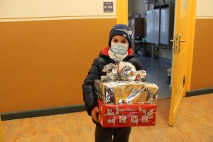 Alle Kinder erwarteten gespannt die Abholung der Päckchen am 19.11.2021. Als der LKW endlich um 13.00 Uhr auf den Schulhof fuhr, wollten alle Kinder helfen, die Päckchen einzuladen. Emsig trugen sie nacheinander alle Päckchen aus dem Lehrerzimmer auf den Schulhof und halfen fleißig, diese in die großen Kisten zu sortieren: für Kindergartenkinder, Grundschulkinder, Oberschulkinder. Spannend war es, auf der Plattform des Lkw´s mit anzupacken.