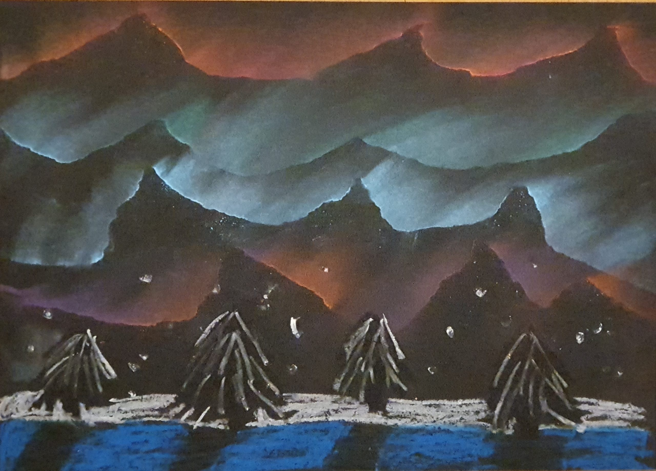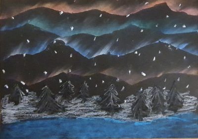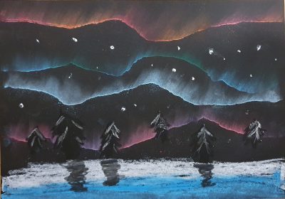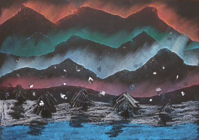 Öl und Pastellkreide: