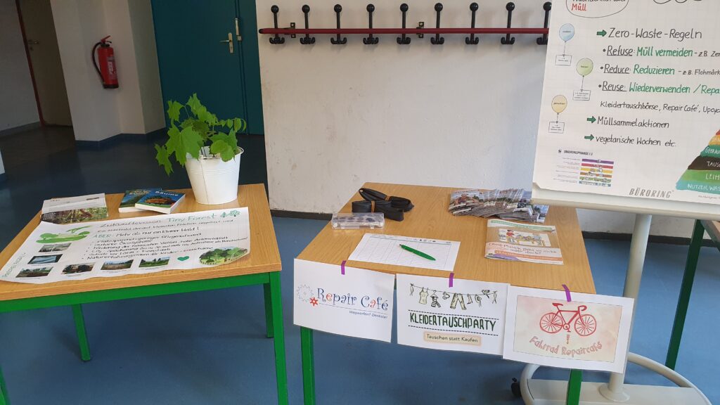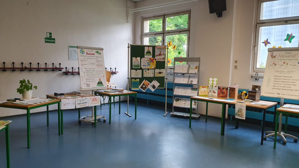 • An zahlreichen Infoständen zum nachhaltigem Konsum (z.B. Repair-Café-Ideen, Kleidertauschbörse, Mülltrennung) und biologischer Vielfalt (z.B. Wildwuchsbeete, Insektenhotels) konnten sich alle Besucher über unserer Ziele und Projekte informieren und eigene Ideen einbringen.