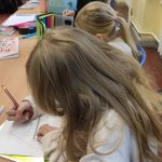 Beim Schreiben einer Reizwortgeschichte zum Thema Weihnachten kamen alle zur Ruhe. Jetzt haben wir für die nächsten Wochen bis Weihnachten noch viele schöne Geschichten zum Vorlesen.