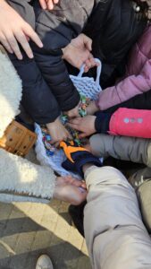 Heute haben wir einen kleinen Einblick in das islamische Ramadanfest (auch geläufig als Zuckerfest) bekommen dürfen. Süßigkeiten für alle Kinder der Schule wurden von einigen Müttern verteilt. Danach wurde auf Wunsch vieler Kinder noch gemeinsam ein Kreistanz getanzt, bei dem alle mitmachen konnten, wenn sie wollten. Vielen Dank für die schönen Momente!