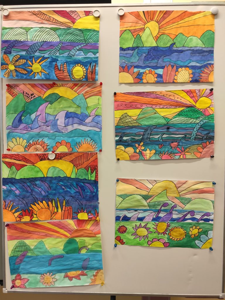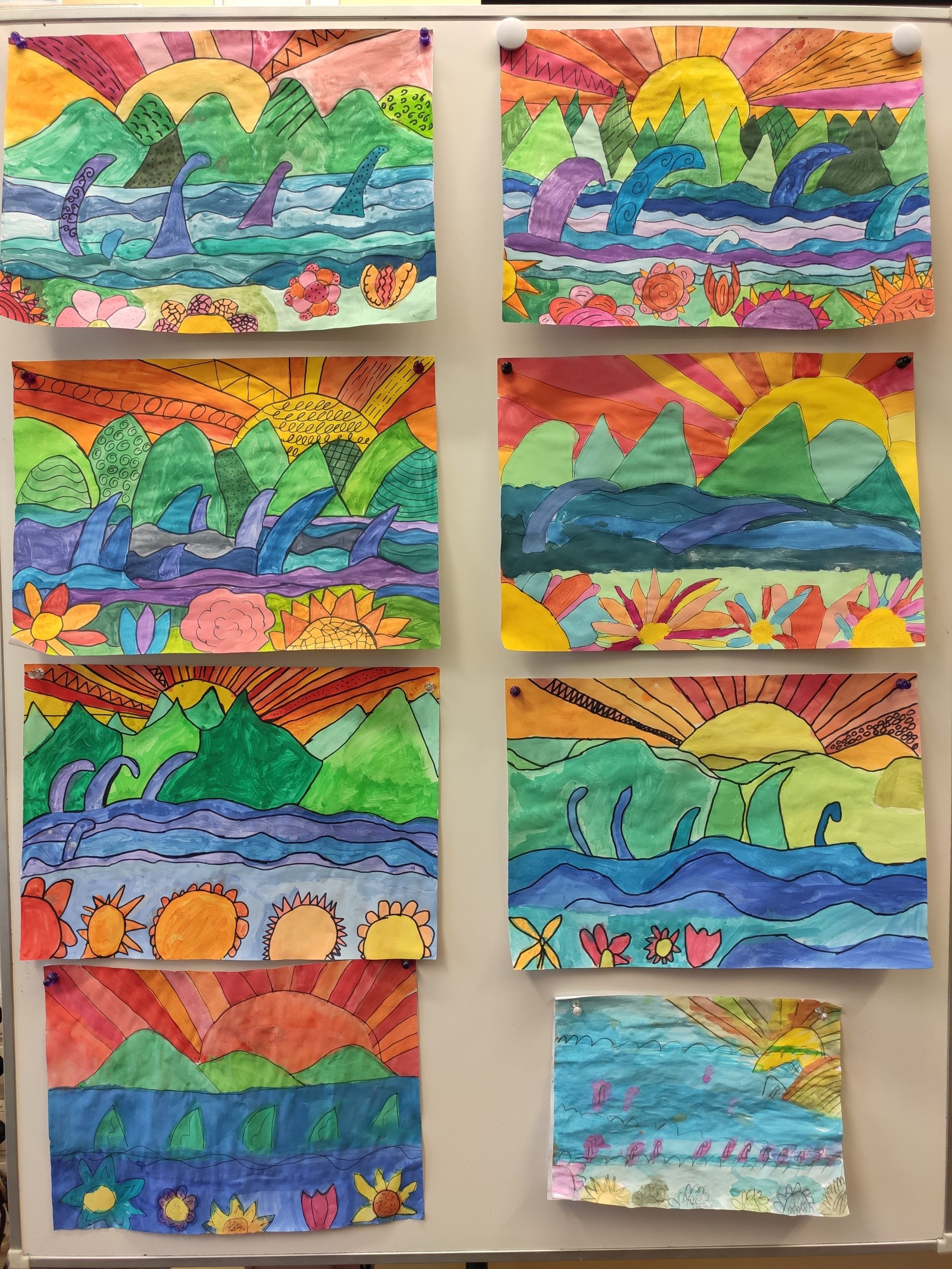 Gestaltet eine Landschaft in vier Ebenen im Warm-Kalt-Kontrast! Es hat etwas länger gedauert, diese Kunstwerke zu schaffen. Sie sind aber so toll geworden!